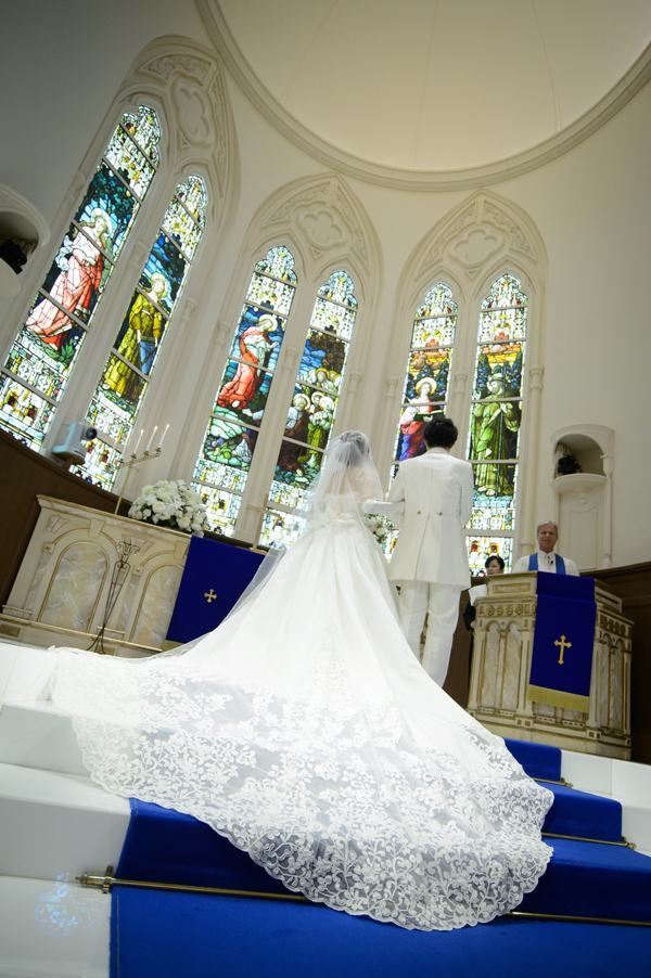 「その命ある限り、真心を尽くすことを誓いますか?」と神父に問われて、誓いを立てているシーンです。彼と改めて目を合わせて、「これからがんばっていこうね」と目で合図し合ったのを覚えています。