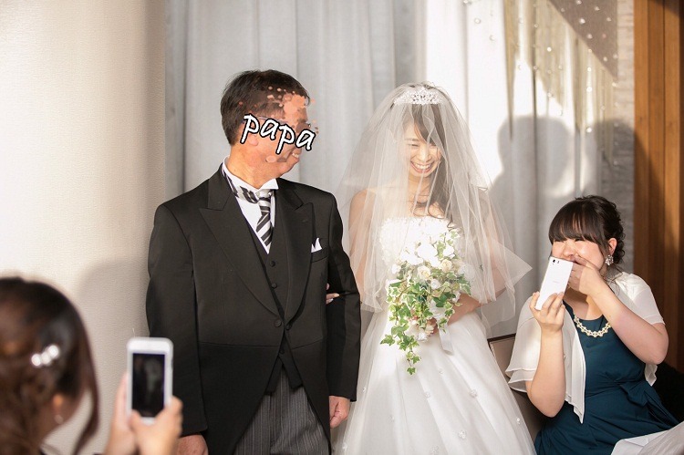 和装の衣裳からガラっと雰囲気を変え、より花嫁らしい姿に変身☆和装も洋装もどちらも楽しめました♪ちなみに、新婦の父も手にグローブを持ちますよね。これは新郎と同様の意味を持ち、父の場合は、これまで新婦を守ってきたという意味を持つそうです。その意味を知っていると、なんだか感慨深くなりますよね。両親への感謝の気持ちがこみ上げてくる入場シーンでした☆