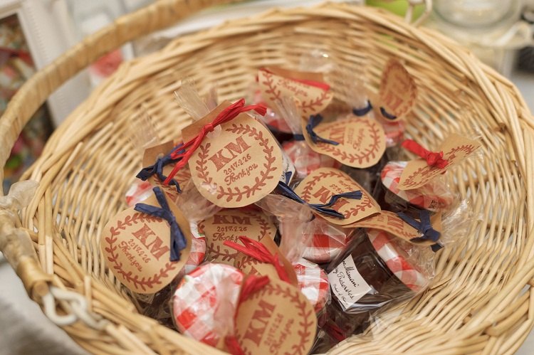 お見送りのプチギフトはボンヌママンのいちごジャム。