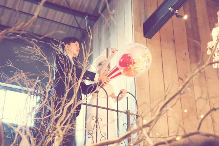 挙式後に行ったアフターセレモニー。テーマのひとつでもある風船を使って、ゲスト参加型の楽しい演出をすることができました。バルーンクラッカーはクラッカーと同じように、紐を引くとバルーンが割れるアイテム。割れたバルーンの中から小さなバルーンなどが飛び出してくるので会場を華やかに演出してくれます。飛び出したハートのバルーンが、ロフトから1階にゆらゆらと落ちていく様子も可愛かったです。