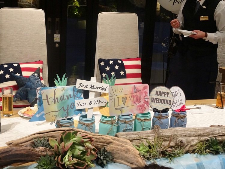 私たちは二次会も結婚式を挙げたビアンカーラ・マリーナ・テラスで♪堅苦しくなくカジュアルなパーティーにしたかったので、ドレスコードはデニムでお願いしました。私たちのためにオリジナルのジャケットを作って参加してくれたゲストもいたり(笑)二次会ではゲストをびっくりさせようと、お色直しをする時間を入れました。実はドレスにはある秘密が隠されているんです♡今から、私たちの二次会をご紹介しますね!