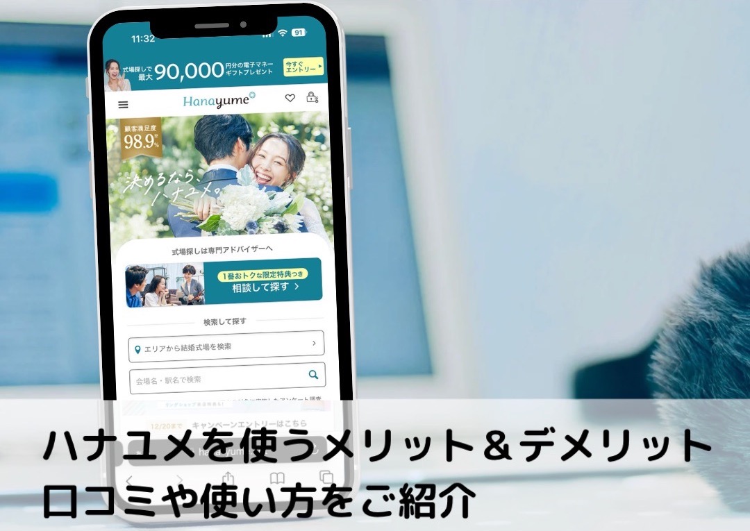 ハナユメは結婚式費用が100万円以上安くなる「ハナユメ割」や最大90,000円の商品券がもらえるキャンペーンで人気。実際のメリット・デメリットや注意点をわかりやすく解説します。