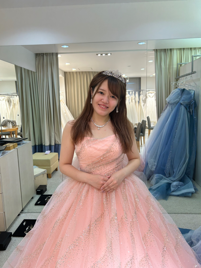 巻き下ろしにティアラもいいなと思い、これは髪を下ろした状態で試着(じゃあ髪を巻け?)