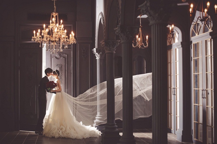 黒が背景だと、ウェディングドレスやベールが映えてとても素敵な写真になります。