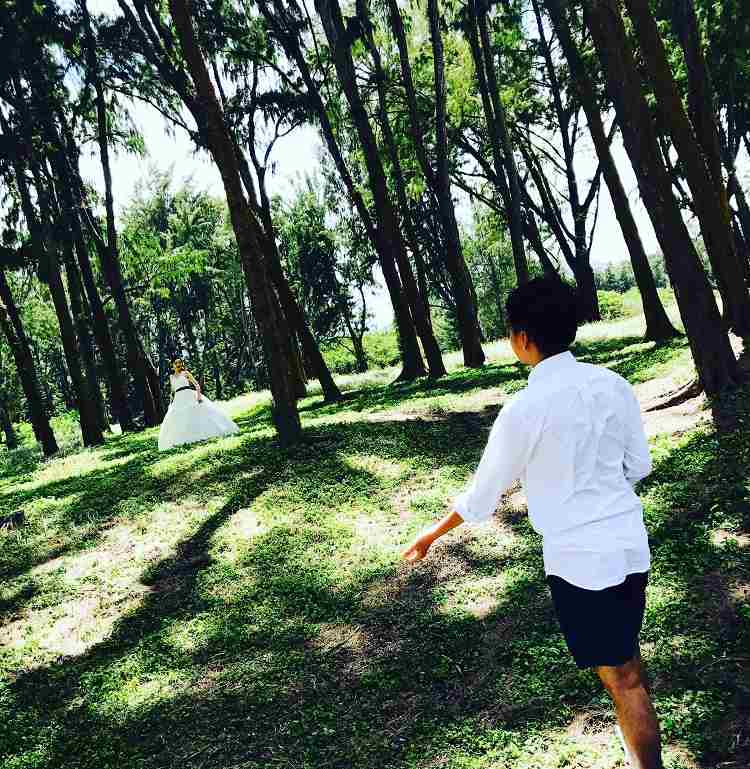 ワイマナロビーチ沿いの林で撮影。何もないところでも、こんなにも素敵な写真に☆遠めからシャッターをきってくださったので、特別な世界観が写真からも伝わる1枚に仕上がりました。