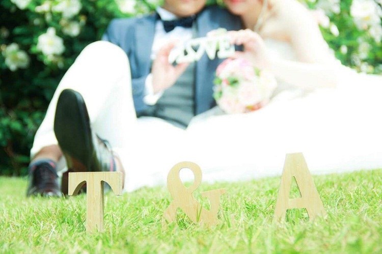 小物も使って撮影しました。これは、ふたりのイニシャルオブジェとLOVEオブジェのコラボレーションです。LOVEは手に持ってさりげなく…。小物を使うことで前撮りがさらに楽しくなりました♪